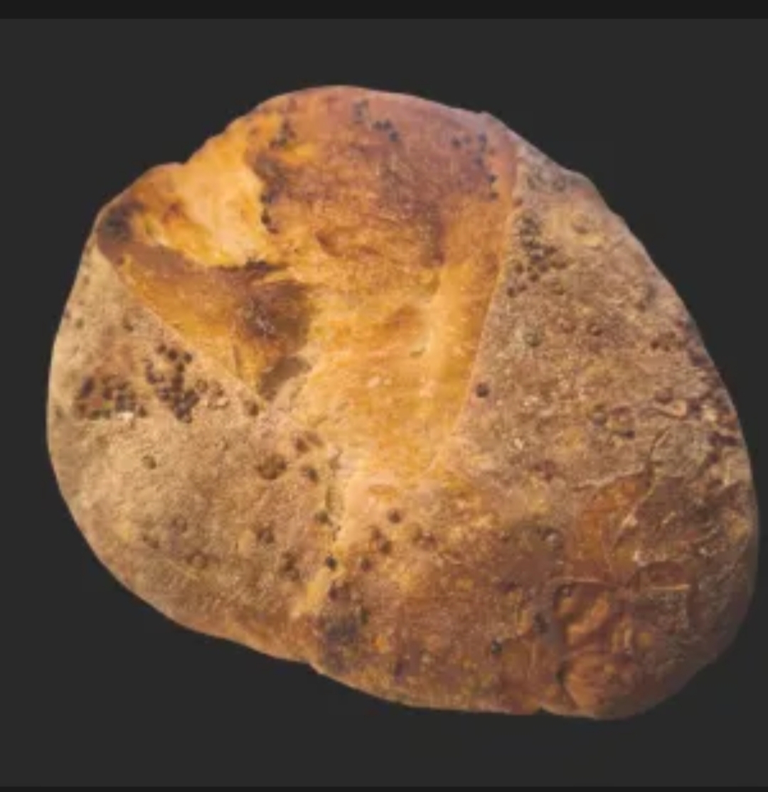 Sourdough bread with toasted perilla seeds bread. Long fermentation Respectus Panis© Method. Weight 450 gr. before baking.